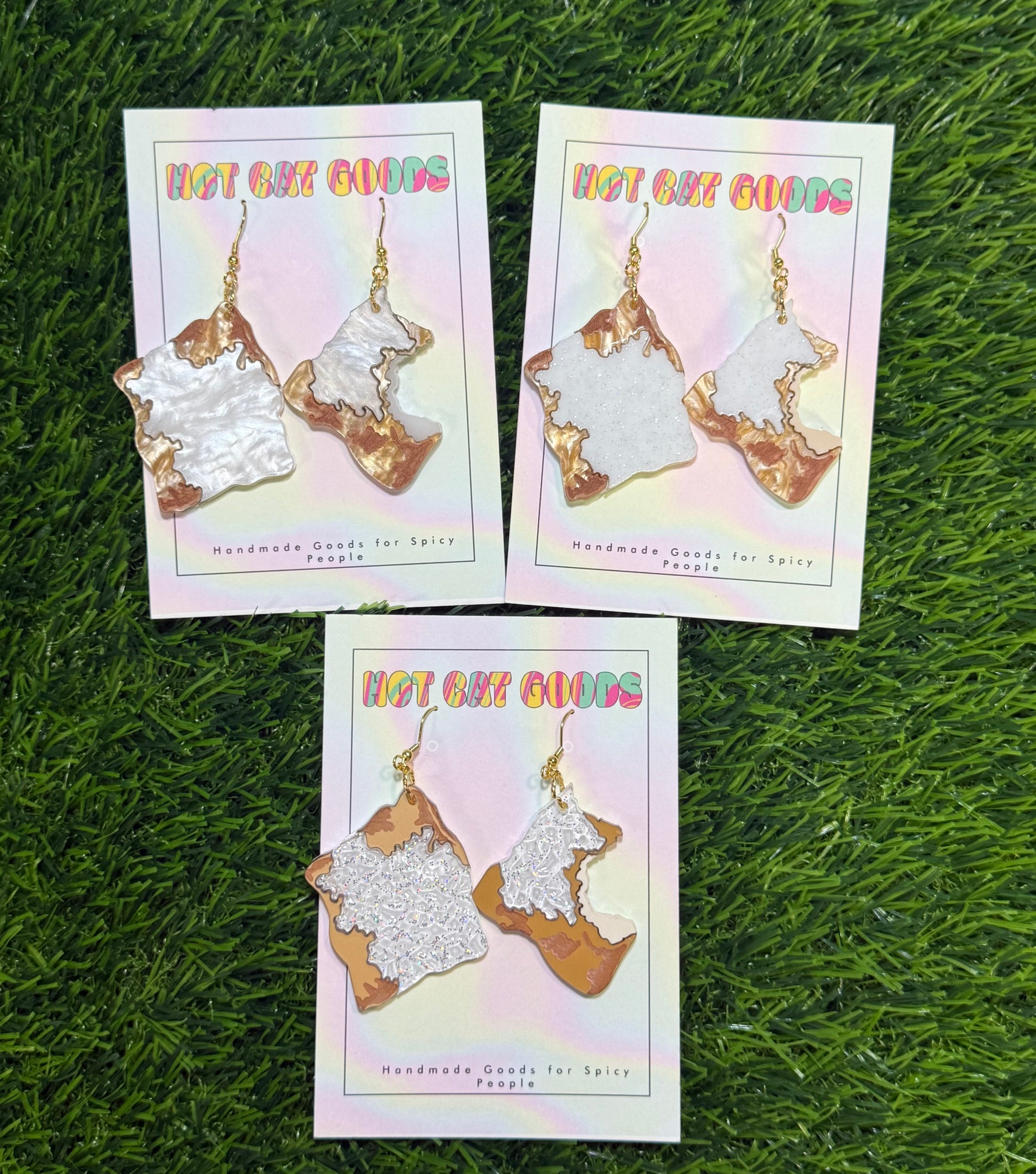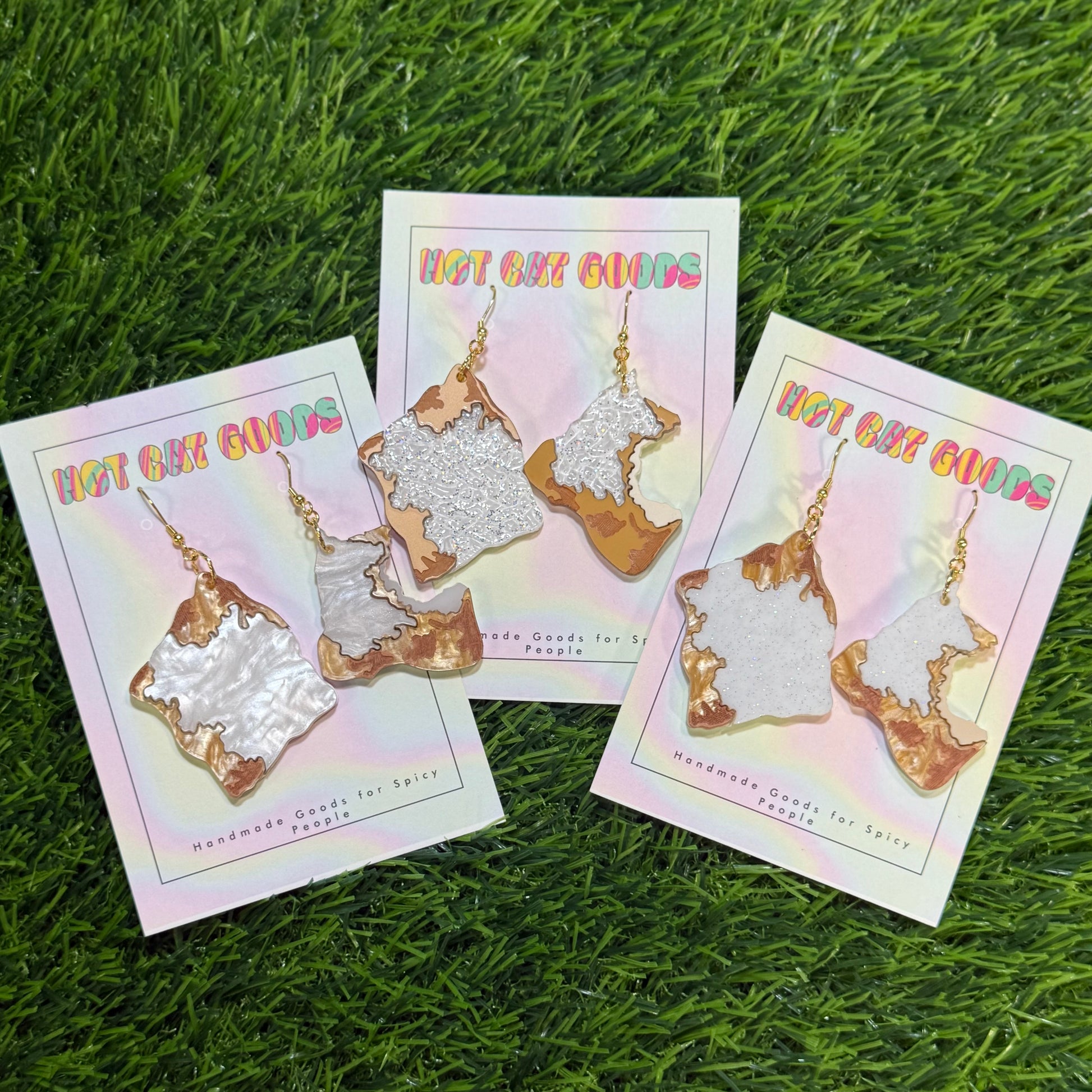 Most of my earrings are handmade from resin and glitter. I have a few made from polymer clay and I'm making more and more out of laser cut acrylic. Best care for plastic earrings is to wash with soap and water. DON'T USE RUBBING ALCOHOL OR NAIL POLISH REMOVER TO CLEAN YOUR EARRINGS! It will make it sticky and weird and gross. don't do it.