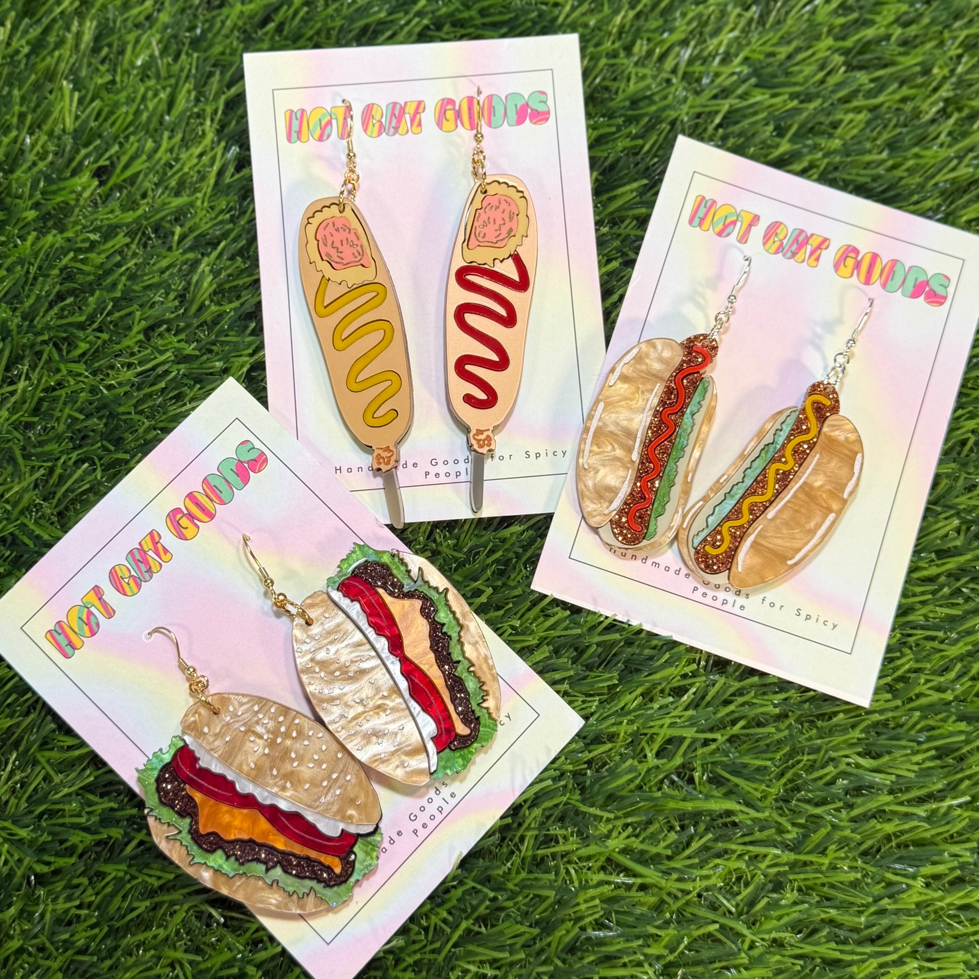 Most of my earrings are handmade from resin and glitter. I have a few made from polymer clay and I'm making more and more out of laser cut acrylic. Best care for plastic earrings is to wash with soap and water. DON'T USE RUBBING ALCOHOL OR NAIL POLISH REMOVER TO CLEAN YOUR EARRINGS! It will make it sticky and weird and gross. don't do it.